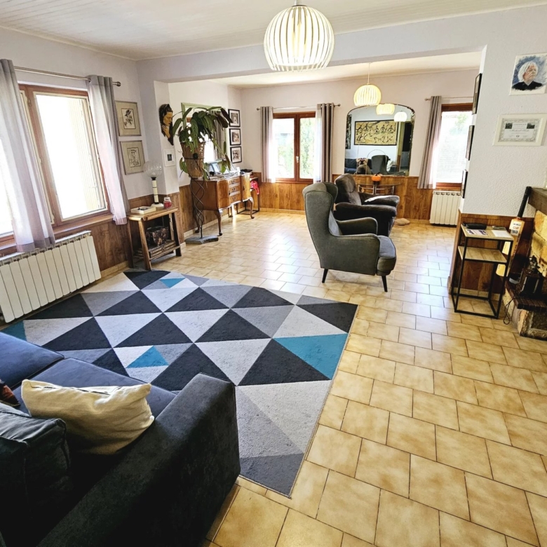 Discover this inviting two-bedroom house in the picturesque town of Quillan, offering comfort and modern features. The spacious living area is filled with natural light, thanks to large windows with double glazing, providing excellent insulation and a tranquil atmosphere. The interior features tasteful decor, a bright and airy lounge, and an open layout perfect for relaxing or entertaining guests.