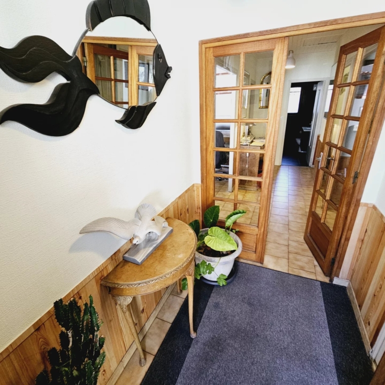 The modern kitchen is designed with practicality in mind, featuring sleek cabinetry, integrated appliances, and a dedicated dining area. Whether you’re cooking for family or hosting friends, this functional kitchen meets all your needs. The home stays comfortable year-round, enhanced by efficient double glazing throughout all rooms.